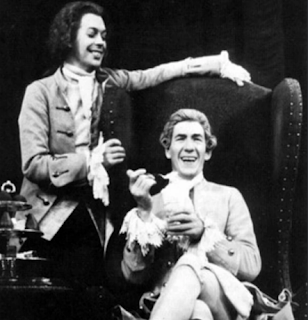 So, what connects these public figures, beyond their nationality and striking bearing? As a young performer, Curry would join a band of English eccentrics, like Rocky Horror Show playwright and actor Richard O'Brien, who shared characteristics with their poetic predecessors, including a predilection for eye-catching outfits, a love of wordplay, and a delight in shocking straight society. Sitwell and her tribe helped to sow the seeds of glam, glitter rock, and even the more flamboyant stage plays, like Peter Shaffer's Amadeus, for which Curry would play the title role in the 1980 Broadway premiere.